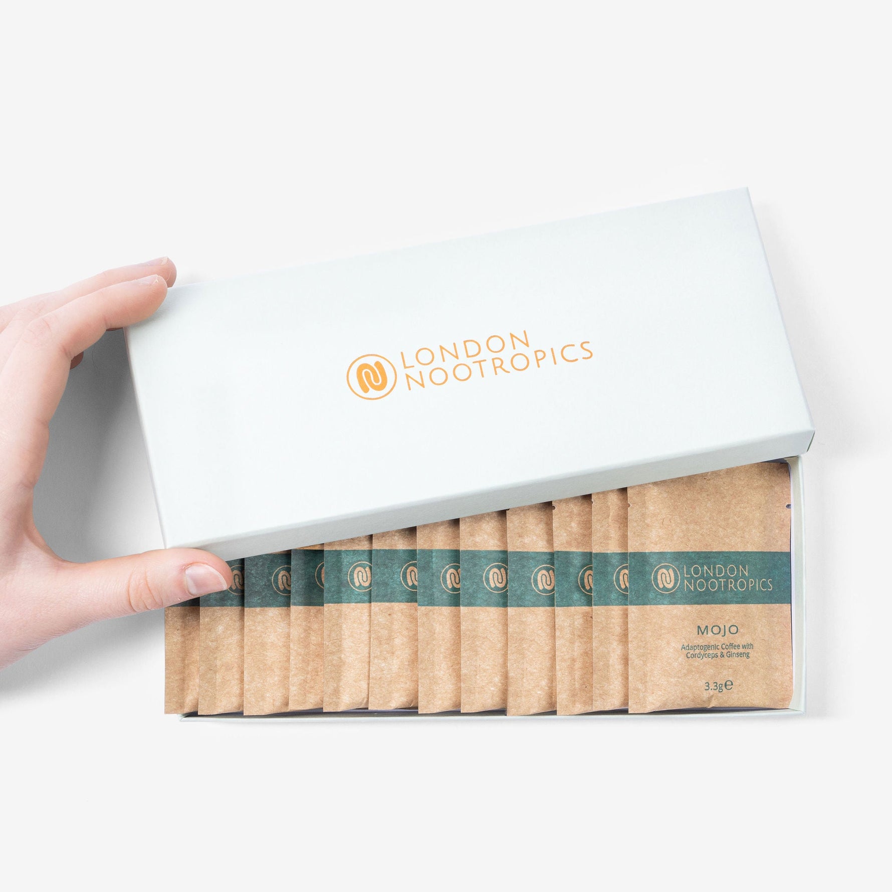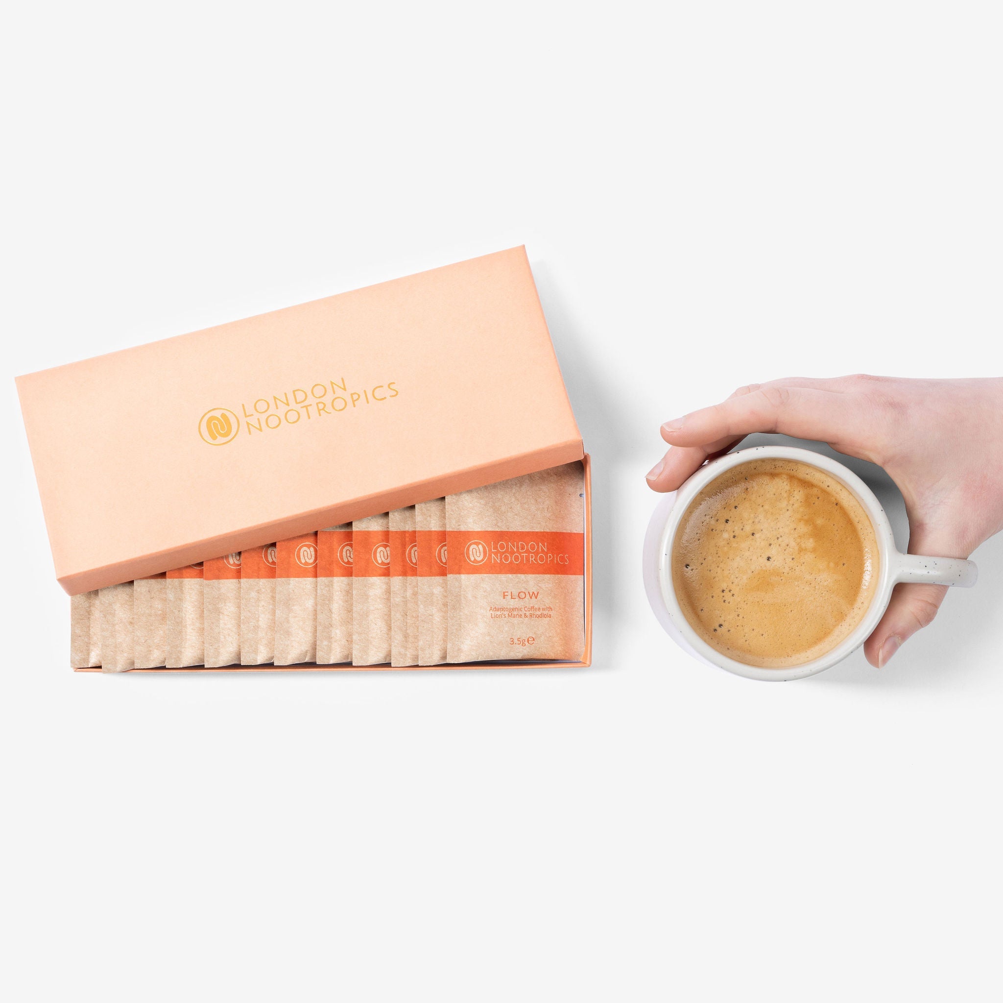 Flow er en opløselig kaffe med 6% fintmalet ristet kaffe, der kombinerer den rige smag af kaffe med nøje udvalgte naturlige ekstrakter for at give mental klarhed og fokus. Med et højkvalitets Lion’s Mane svampeekstrakt fra Hifas da Terra, der indeholder 45% Beta-Glucaner, støtter Flow kognitive funktioner og nervesystemet. Tilføjet Rhodiolife® Rhodiola Rosea ekstrakt bidrager med adaptogene egenskaber, som hjælper med at balancere stress og øge mental ydeevne. Naturlige aromaer runder oplevelsen af, så du kan starte dagen med et roligt, men fokuseret mindset.